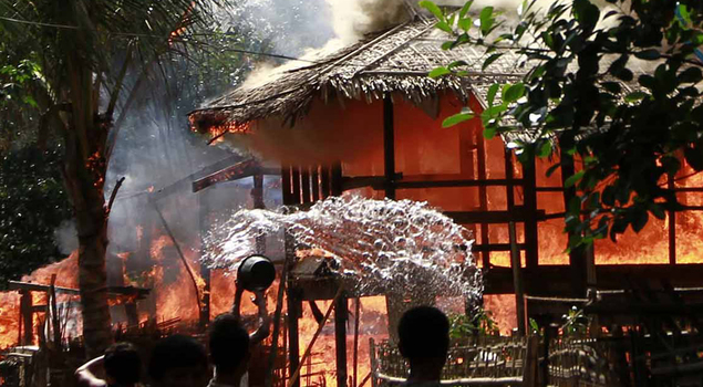 Homes burn, gunfire heard in western Myanmar